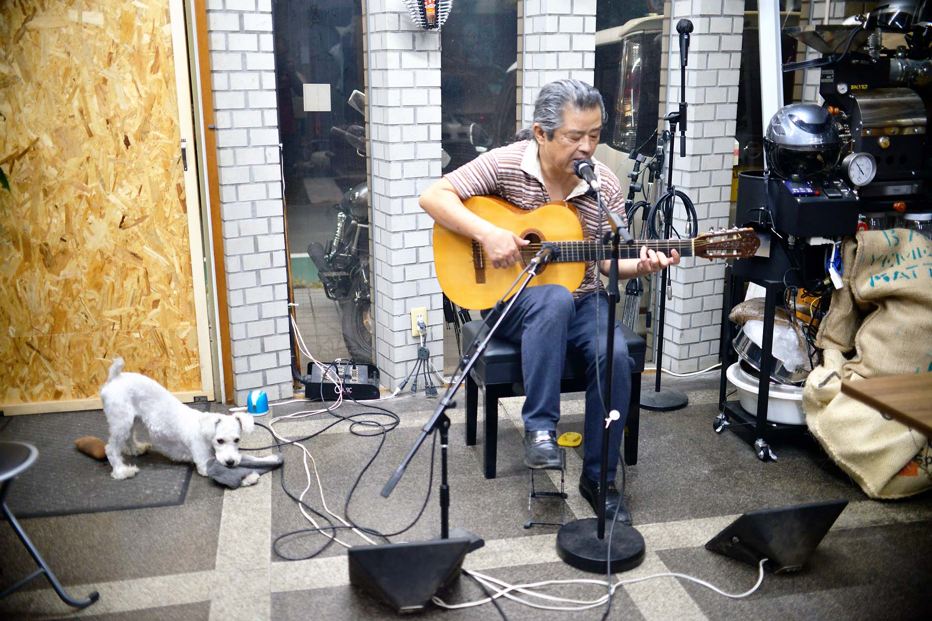 明日の8/11(日)14時からの「ボサノバライブ」で演奏して頂くボサノバプレーヤーのバーブ・中島さんにサウンドチェックの最終確認にお越し頂きました