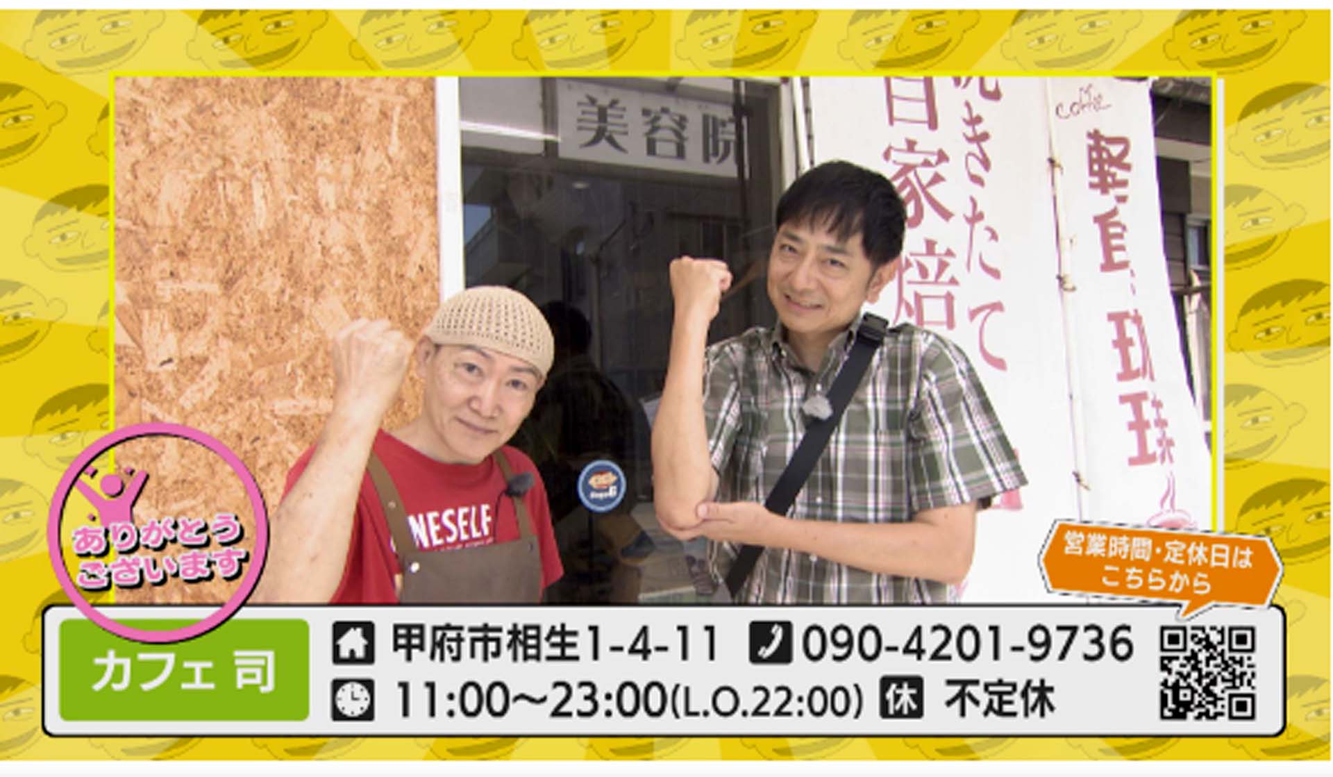 スゴろく取材様子-3/4 投稿日時: 2024年10月3日 投稿者: tsukasa0308 返信 先日飛び込み取材して頂けたUTYの「スゴろく」で9/30(月)に放映されたカフェ司の紹介の様子の3/4です♪(^o^)v ※カフェ司のメニューです♪(^o^)v http://2kasa.jp/blog/menu もし宜しければご覧頂きご興味御座いましたらご来店お待ちしております<(_ _)>