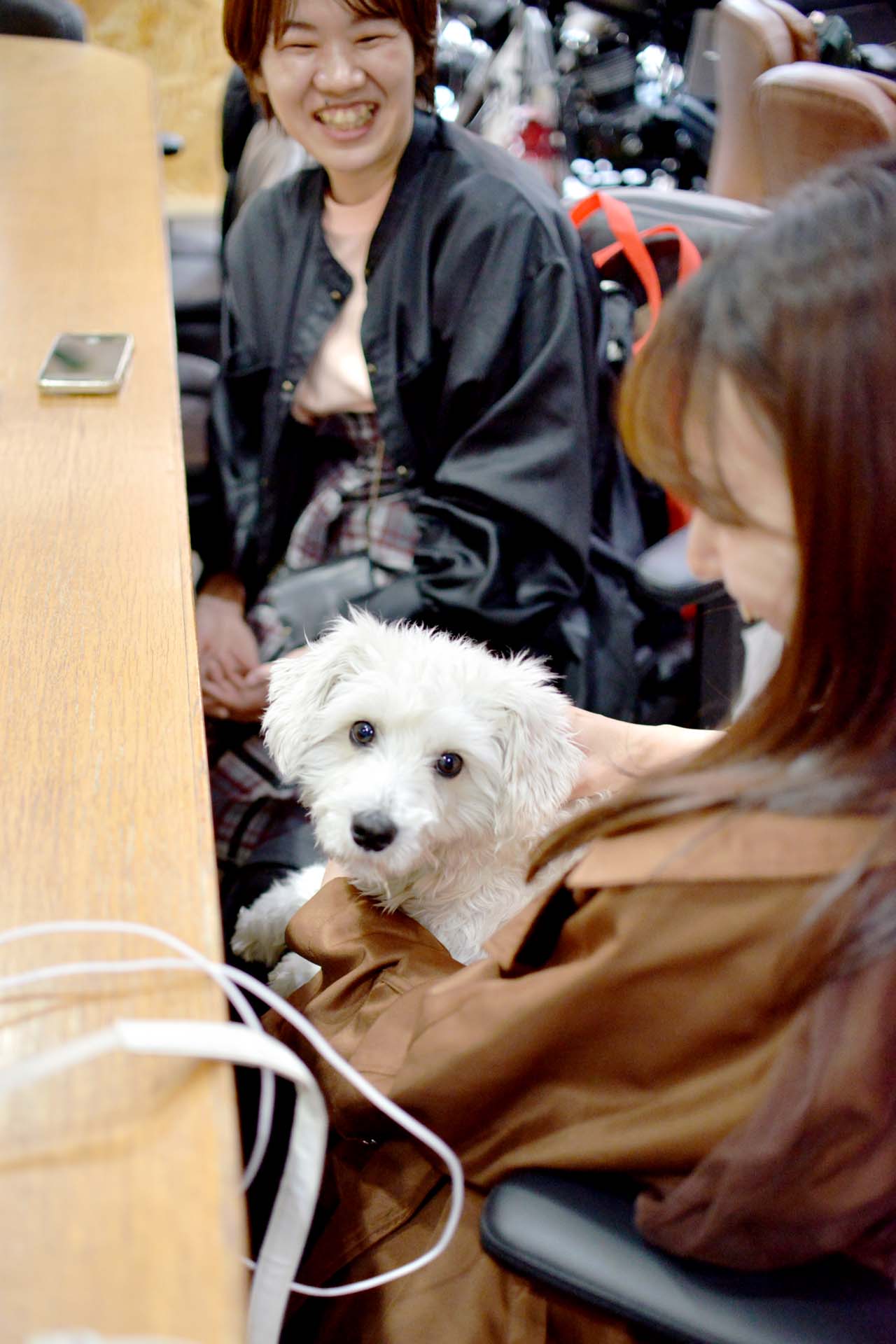 ※犬が苦手だったり嫌いな方もしらっしゃいますので、普段はマシュ君は客席には居ませんので、もしマシュ君と遊びたい方は一声おかけ下さい、その時に在席して頂いているお客様全員にお伺いして犬が苦手お嫌いな方が居なければマシュ君と遊んで頂けます。