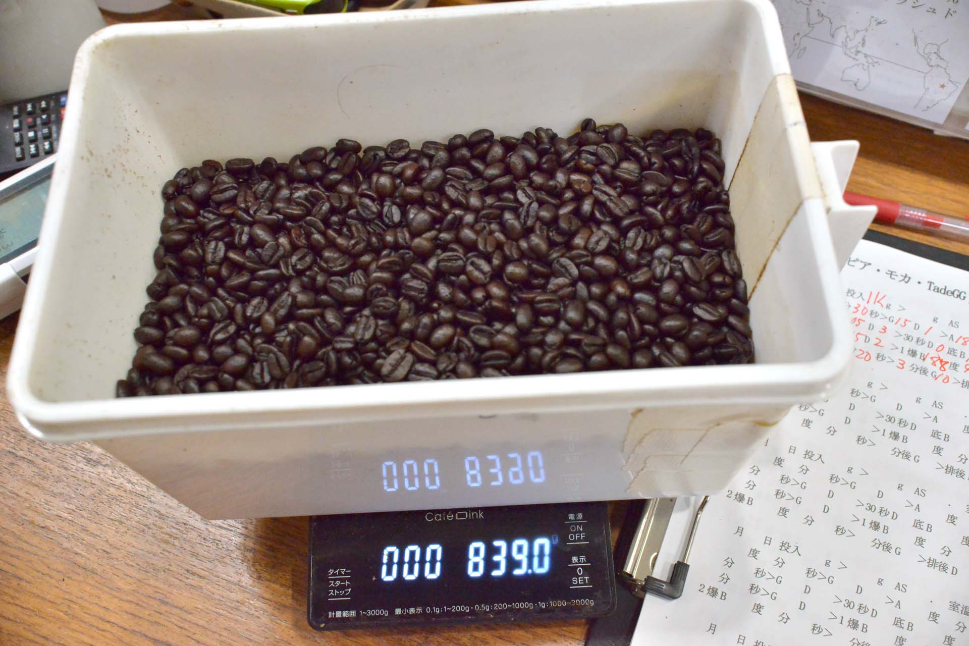 また補正定数は各焙煎度によって可変しますので、全ての焙煎度で何度か計測して平均値を出して導き出してエチオピアのデカフェの焙煎度=アグトロン値運用をしています
