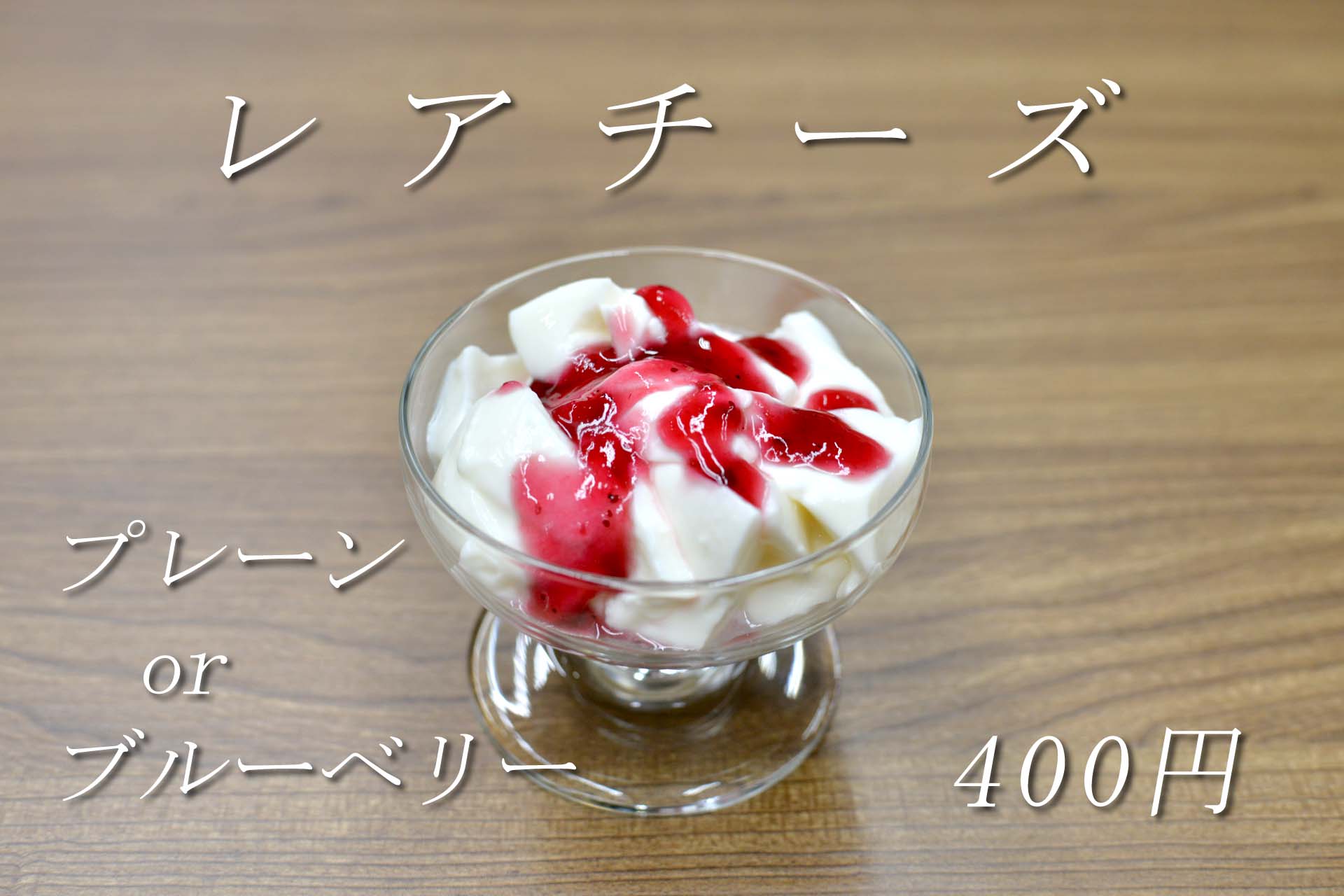 レアチーズ(プレーンorブルベリーソース) 400円