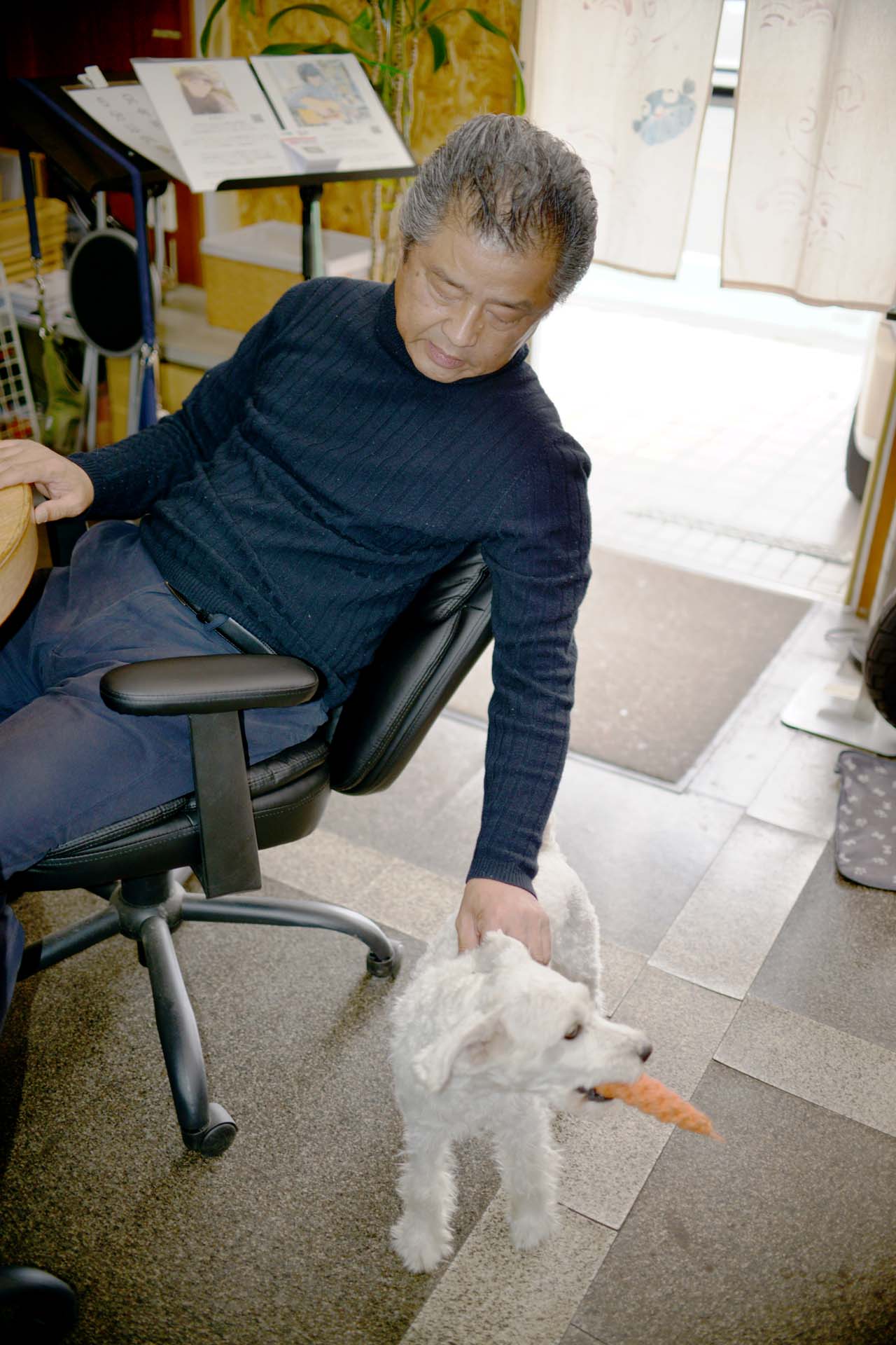 ※犬が苦手だったり嫌いな方もしらっしゃいますので、普段はマシュ君は客席には居ませんので、もしマシュ君と遊びたい方は一声おかけ下さい、その時に在席して頂いているお客様全員にお伺いして犬が苦手お嫌いな方が居なければマシュ君と遊んで頂けます