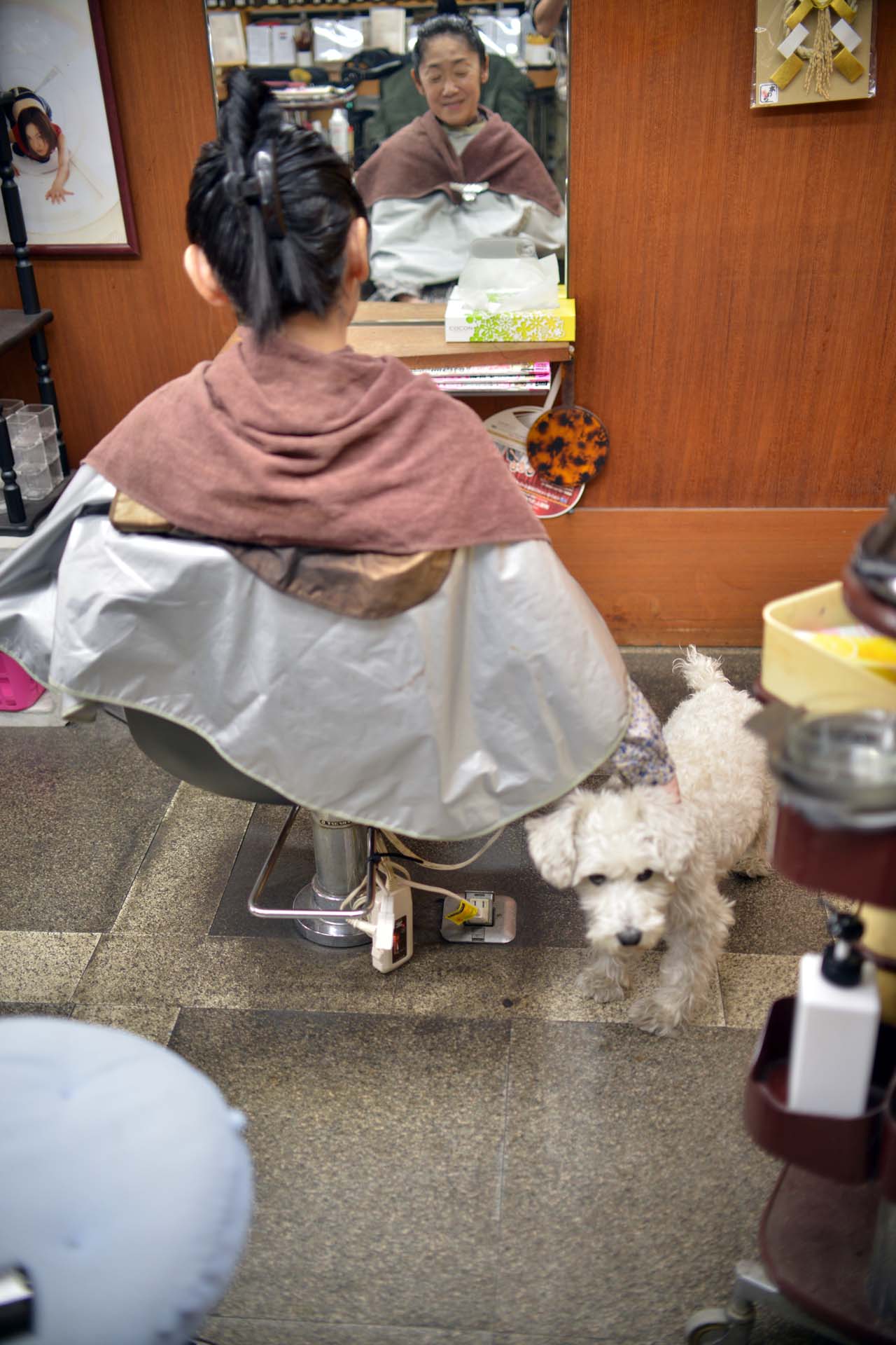 マシュ君愛でながらトーンダウンカラー中のお客様♪(^。^)v
