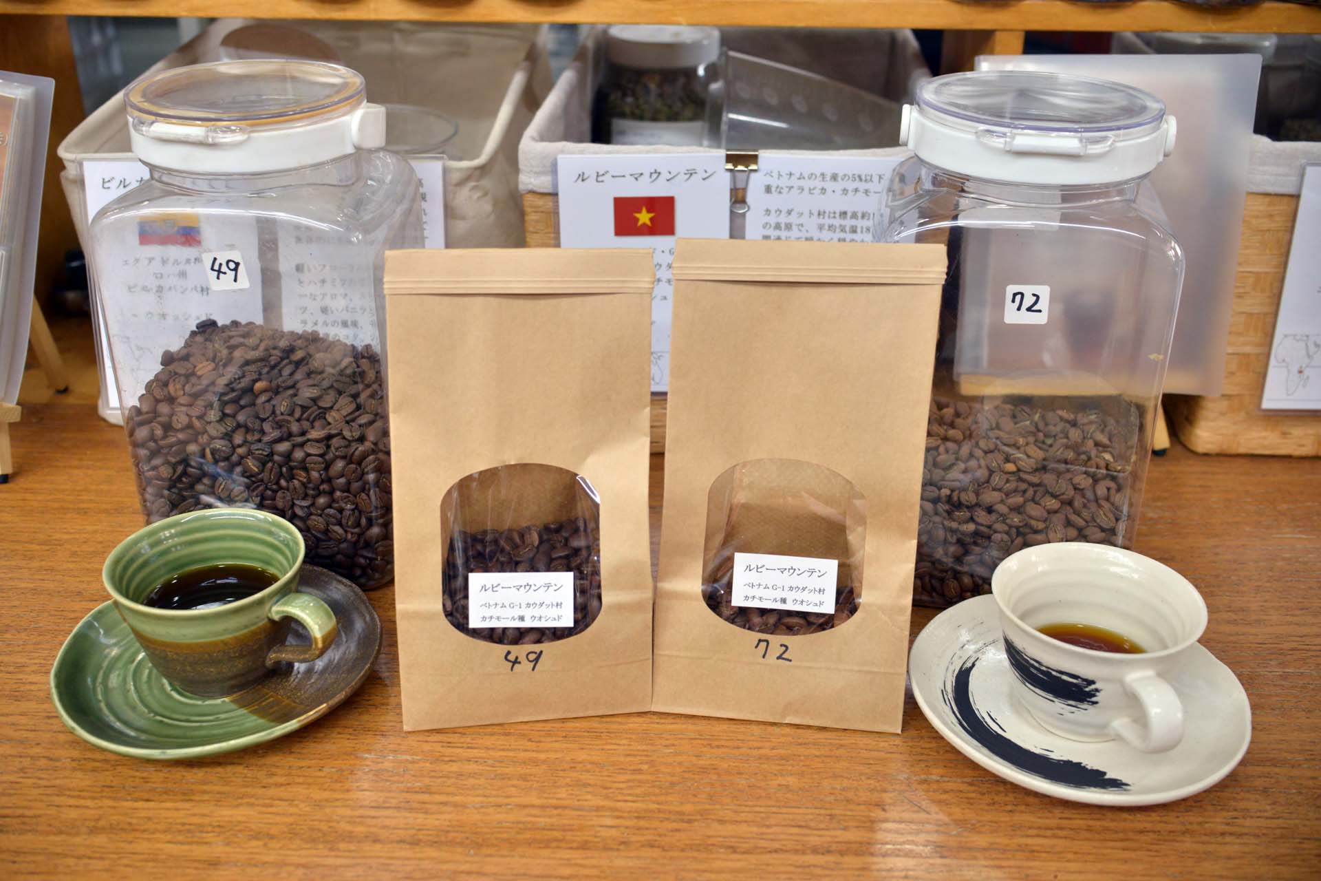 どちらの焙煎度を購入するか飲んで試したいとの事で、FullCityroast-AS49とMediumroast-AS72の両方をご注文頂き2杯同時に淹れさせて頂きました